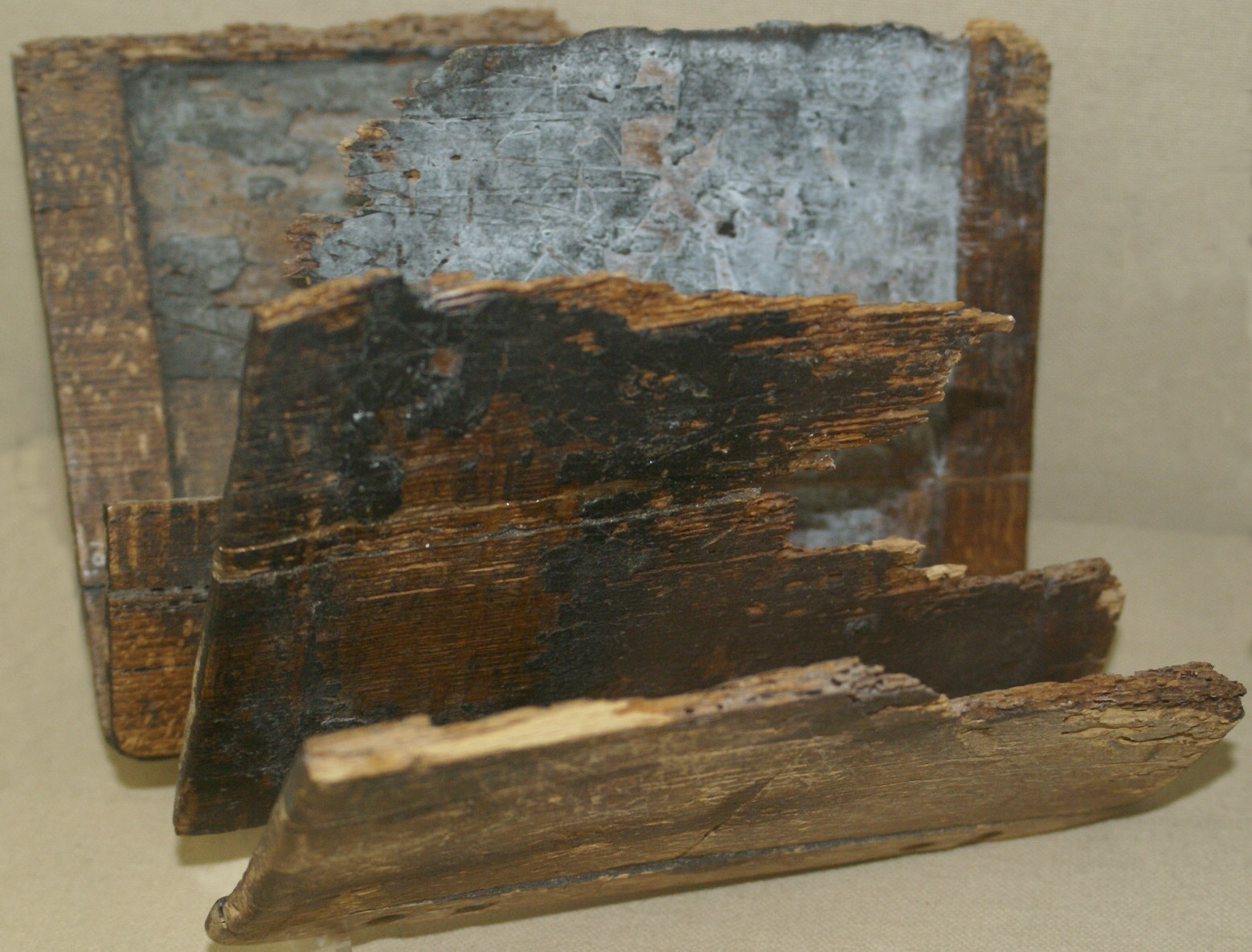 Deutlich zu erkennen sind die erhaltenen schwarzen Wachsreste auf dem zweiten und dem hintersten Teil.
