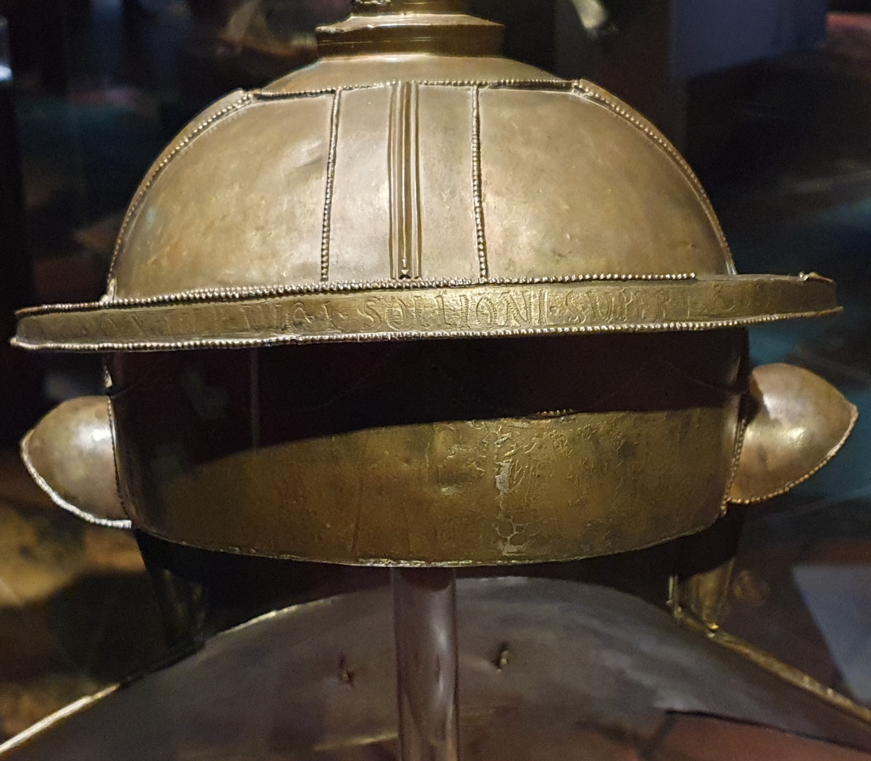 Gallo-römischer Offiziershelm mit persönlicher Inschrift inklusive Namensnennung und Einheit - Photo von Lucius Annaeus Florus Minor aus der Sonderausstellung "Ave Caesar" im Antikenmuseum in Basel am 25.2.2023
